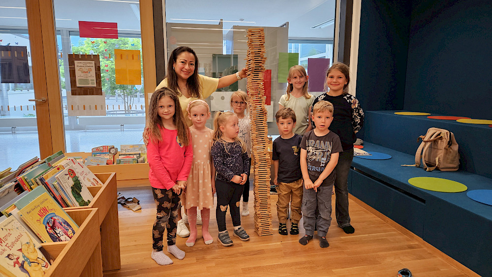 Am ersten Mittwoch im Juni war es wieder so weit: In der Bücherei Bludesch lud Sonia, eine engagierte Mitarbeiterin mit großer Begeisterung für Kinderliteratur, zur monatlichen Geschichtenzeit ein. Rund eine halbe Stunde lang lauschten die kleinen Zuhörerinnen und Zuhörer gespannt, als Sonia den Kindern die Geschichte aus dem Buch ‚Fast wie feine Leute‘ erzählte.