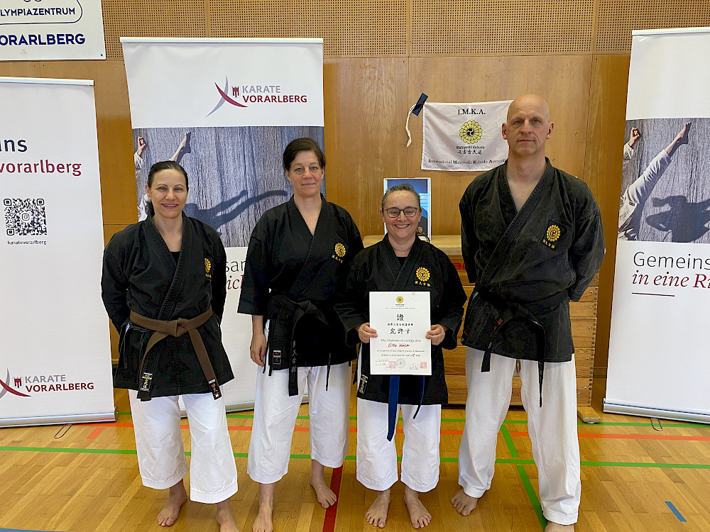 Elke Kaiser hat sich wochenlang auf die nächste Kobudo-Gürtelprüfung vorbereitet. Beim Lehrgang in Dornbirn wurde nach den Trainingseinheiten die Prüfung von Dr. Claus Fröhlich und Julia Fröhlich abgenommen. Elke Kaiser hat die Prüfung zum 1. Kyu (Braungurt) erfolgreich bestanden.