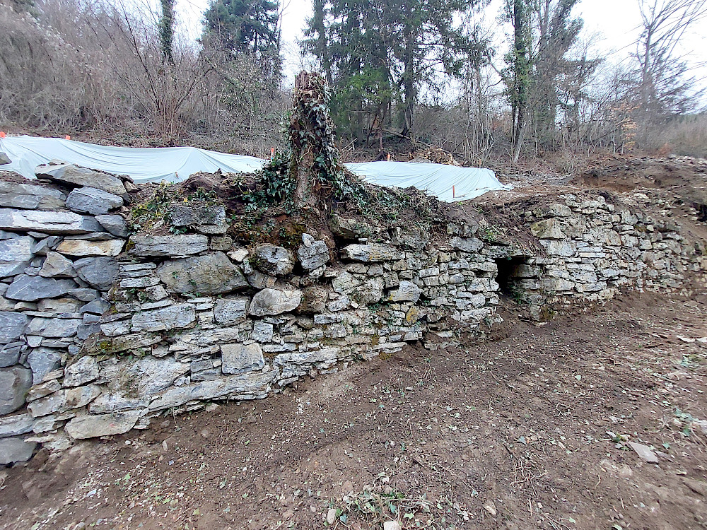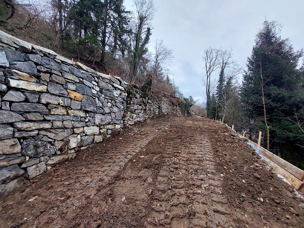 In der Woche vom 01. April 2024 wurde ein weiterer Teil der alten Trockenmauer entlang der Vanovagasse sansiert.