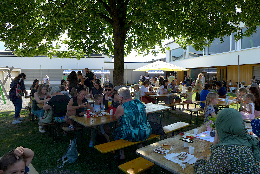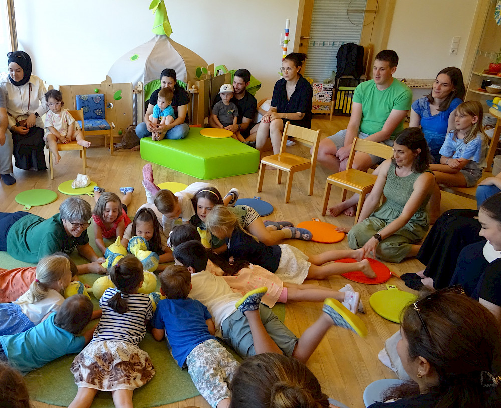 Über das gesamte Kindergartenjahr hatten die Kinder gemeinsam mit ihren Gruppenpädagoginnen einige Lieder, Tänze und kleine Vorführungen vorbereitet. Am Festtag zeigten sie, was sie gelernt hatten – und das mit viel Freude und einem gewissen Stolz. Die Gäste verfolgten die Aufführung mit großem Interesse und waren begeistert vom Einsatz der Kinder. Nach der Vorstellung ging das Fest in einen gemütlichen Ausklang über. Auf dem schön hergerichteten Gelände wurde gemeinsam gefeiert, geplaudert und genossen. Für das leibliche Wohl war bestens gesorgt – viele Eltern hatten mitgebrachte Speisen und Getränke beigesteuert, sodass ein buntes Buffet mit allerlei Leckereien entstand. Ein herzliches Dankeschön an alle, die mitgeholfen haben, diesen Tag so besonders zu gestalten.