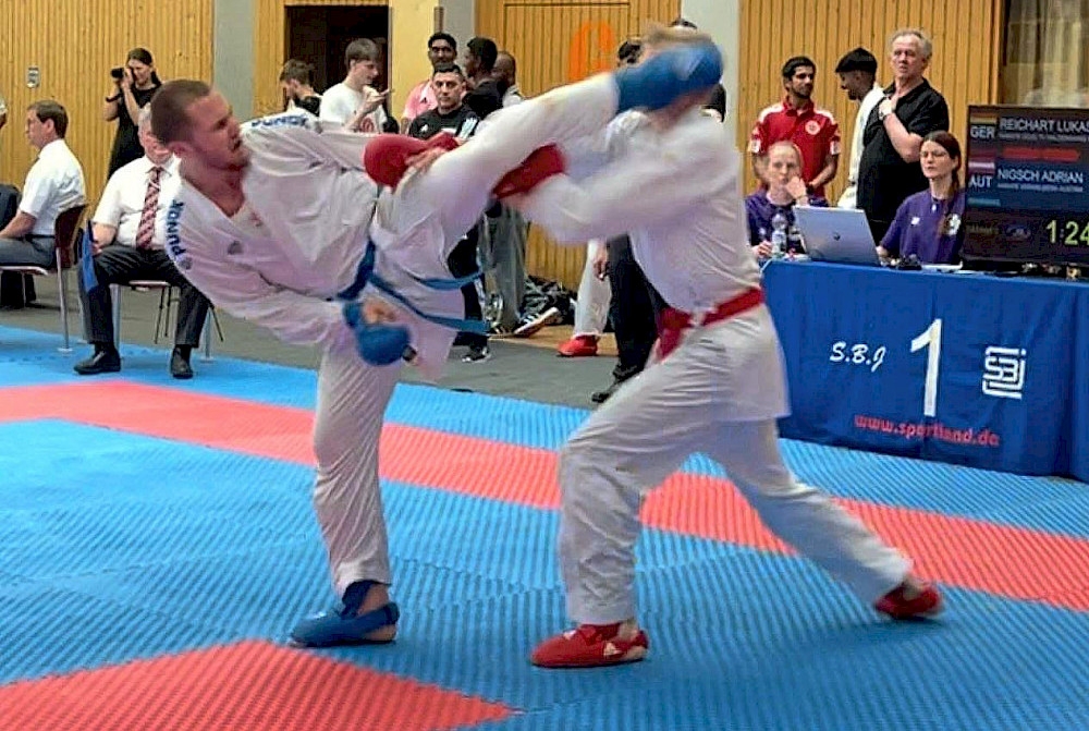9 Nationen, ca. 540 Athleten – Adrian Nigsch war bei den Süd-Games in Ulm im Bewerb Kumite Einzel Senioren bis 84 KG im Einsatz.