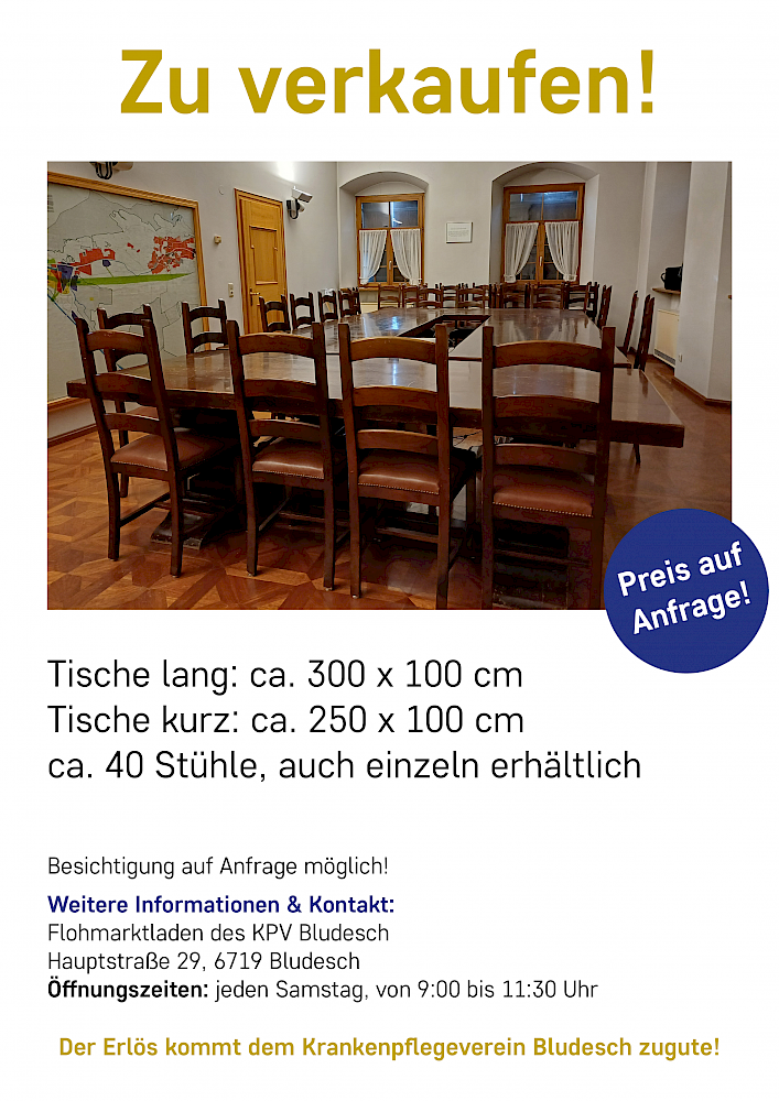 Deshalb werden die Tische und Stühle aus dem Sitzungssaal und dem Kronensaal verkauft.