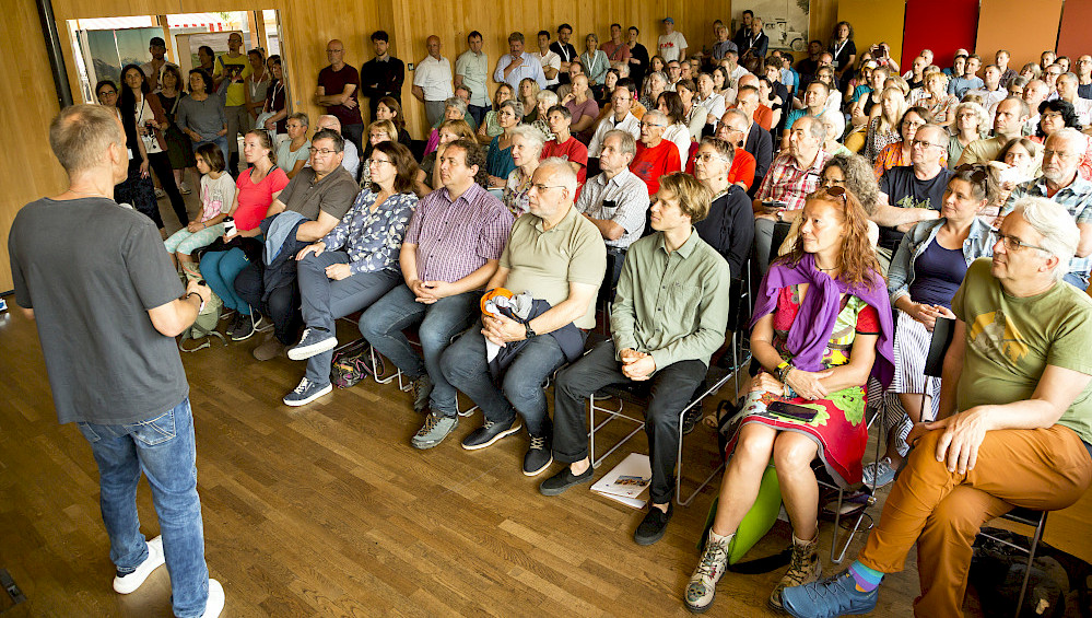 Nur noch Stehplätze gab es beim Auftritt von Marcus Wadsak. Der bekannte ORF-Wetterexperte und Klima-Aufklärer wusste mit seiner Keynote "Klimawandel: Fakten gegen Fake & Fiction" zu begeistern. Prägnant und verständlich zeigte er mit zahlreichen Daten die Dringlichkeit zum Handeln auf: "Wir sind die erste Generation, welche die Folgen des Klimawandels spürt und die letzte, die etwas dagegen tun kann". Ganz anders Seppi Neubauer, dem es zum Abschluss mit seinem Programm „Heiße Liebe“ tatsächlich gelang, Kabarett und Klimawandel zu verbinden.