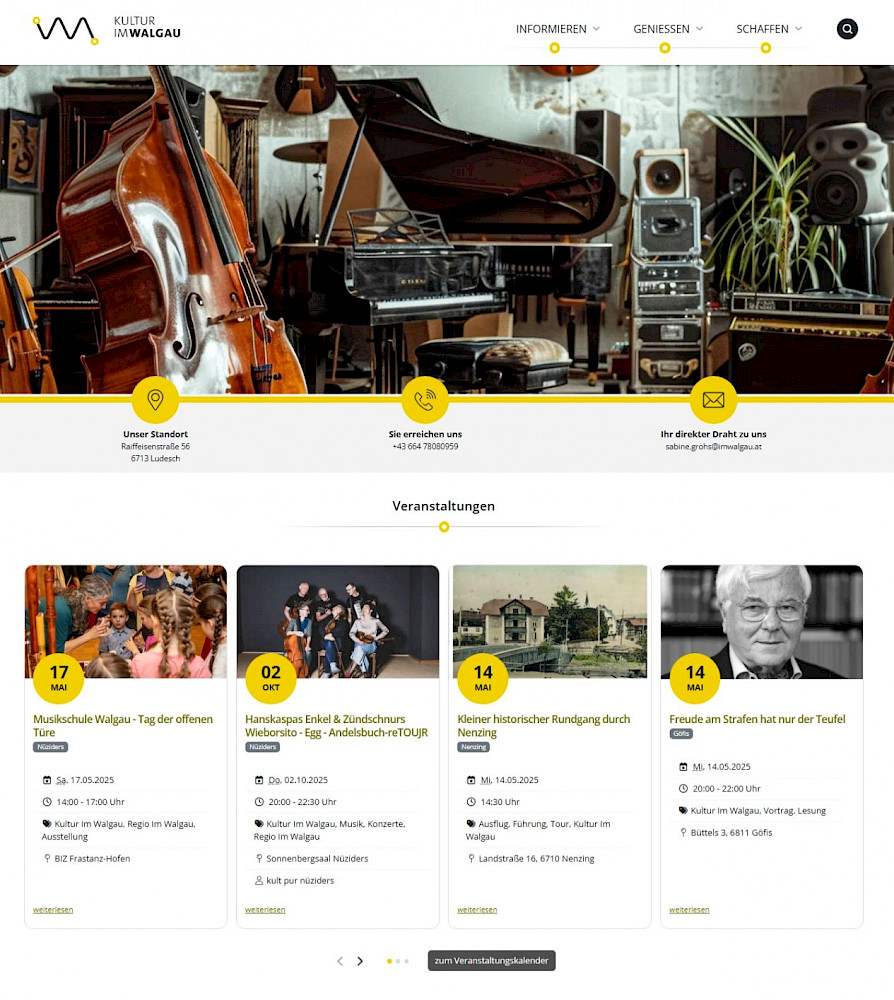 Der Fachbereich Kultur Im Walgau fungiert als Servicestelle für Kulturschaffende und hat das Ziel, der Kultur Im Walgau insgesamt zu mehr Öffentlichkeit zu verhelfen. Der Fachbereich Umwelt, Landwirtschaft und Klima setzte auch 2024 Impulse für die Klimawandelanpassung. Neben der „Aktion Heugabel“ widmet sich „Walgau Wiesen Wunder Welt“ naturkundlichen Themen. Die Regionale Sozialplanung erstellte z.B. eine Sozialraumanalyse als Basis für eine integrierte Sozialplanung, evaluiert zu Integration, Flucht & Asyl und beherbergt zudem das teil-regionale Care Management Unterer Walgau. www.imwalgau.at