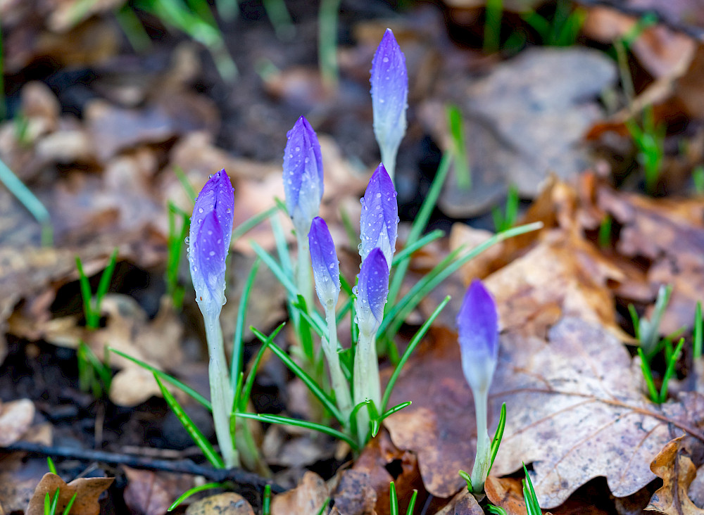 Wenn die Frühjahrsblüher austreiben, kann grobes ‚Durcheinander‘ in der Pflanzfläche entfernt werden. Schöne Wintersteher wie Blüten- und Samenstände, altes Blattwerk sowie Herbstlaub können noch im Garten bleiben. Nur so erinnert das Frühlingserwachen an den Naturstandort, wo die Frühlingsboten durch das alte Laub sprießen – ein wirkungsvoller Kontrast!