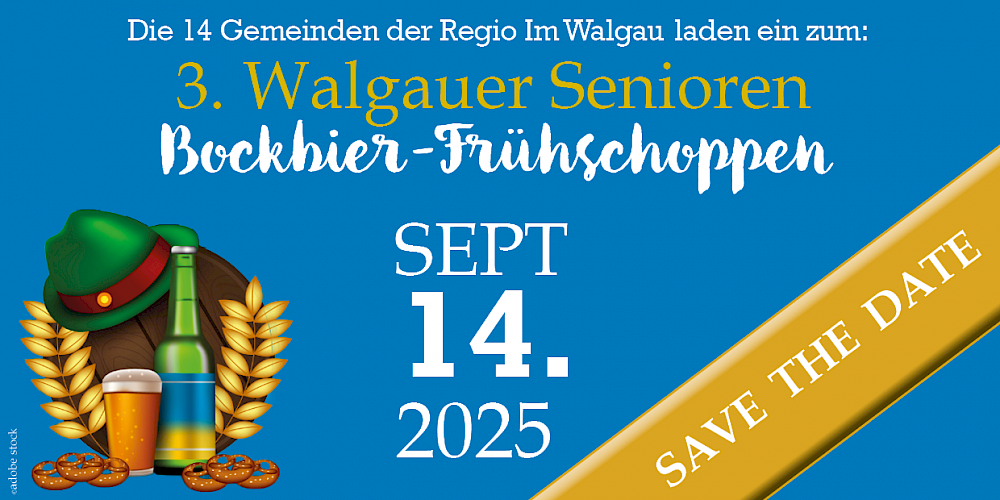 halten Sie Ihren Kalender bereit! Die 14 Gemeinden der Regio Im Walgau freuen sich sehr, Sie bereits heute zum dritten Bockbier-Frühschoppen einzuladen. Merken Sie sich diesen geselligen Anlass unbedingt vor!